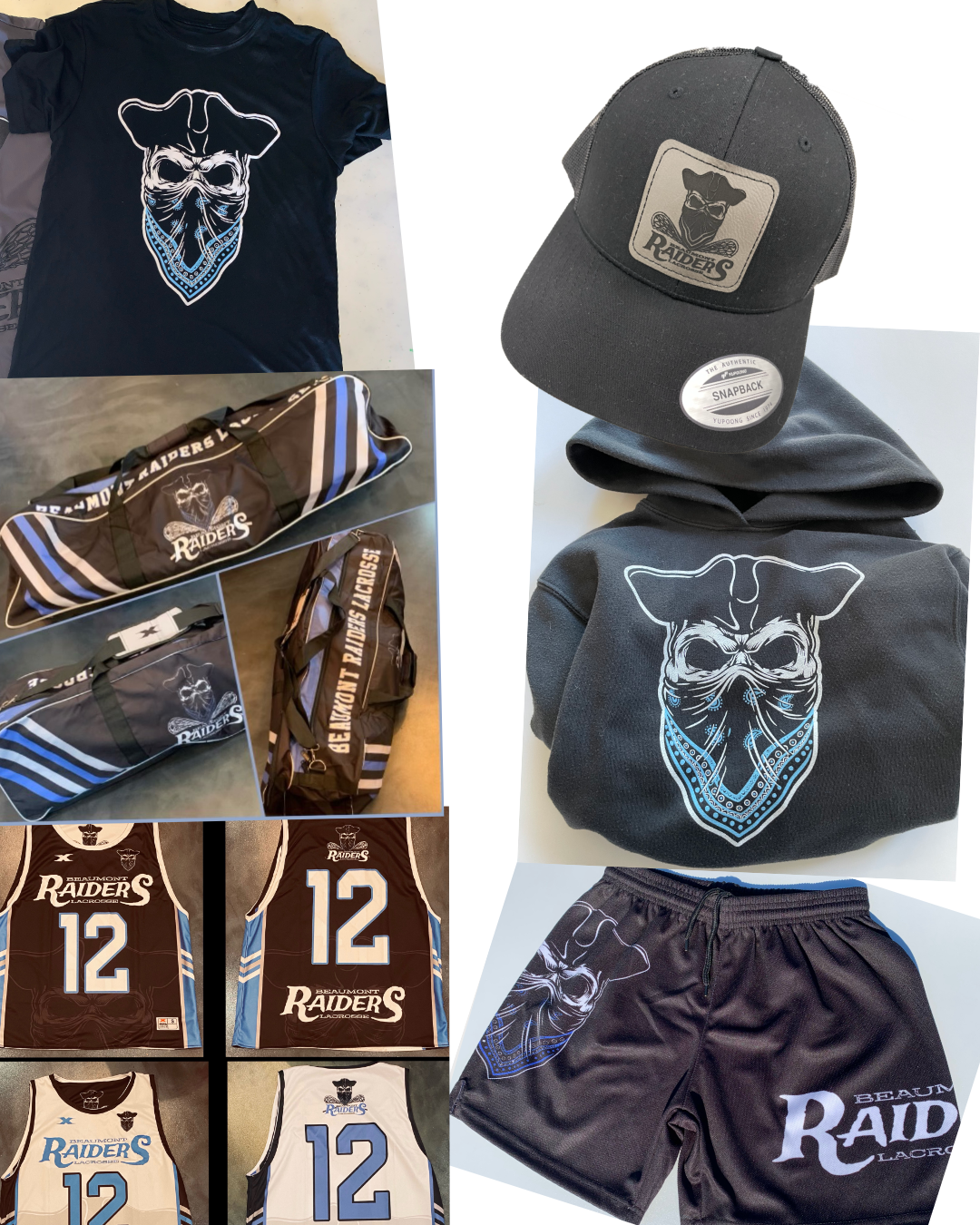 Apparel or products featuring the Beaumont Raiders Lacrosse Logo is only available through our approved vendors. Replication and use of the logo outside of approved vendors is prohibited.